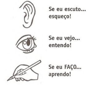 "Note que, durante as aulas, normalmente você ouve e vê e pouco faz. Isso significa que, durante a aula, se muito, você entende. Depois, no momento do estudo, é que você tem a chance de fazer. Fazer por ocasião da resolução de problemas, fazer enquanto estiver elaborando o resumo de um texto, fazer ao escrever e desenhar."